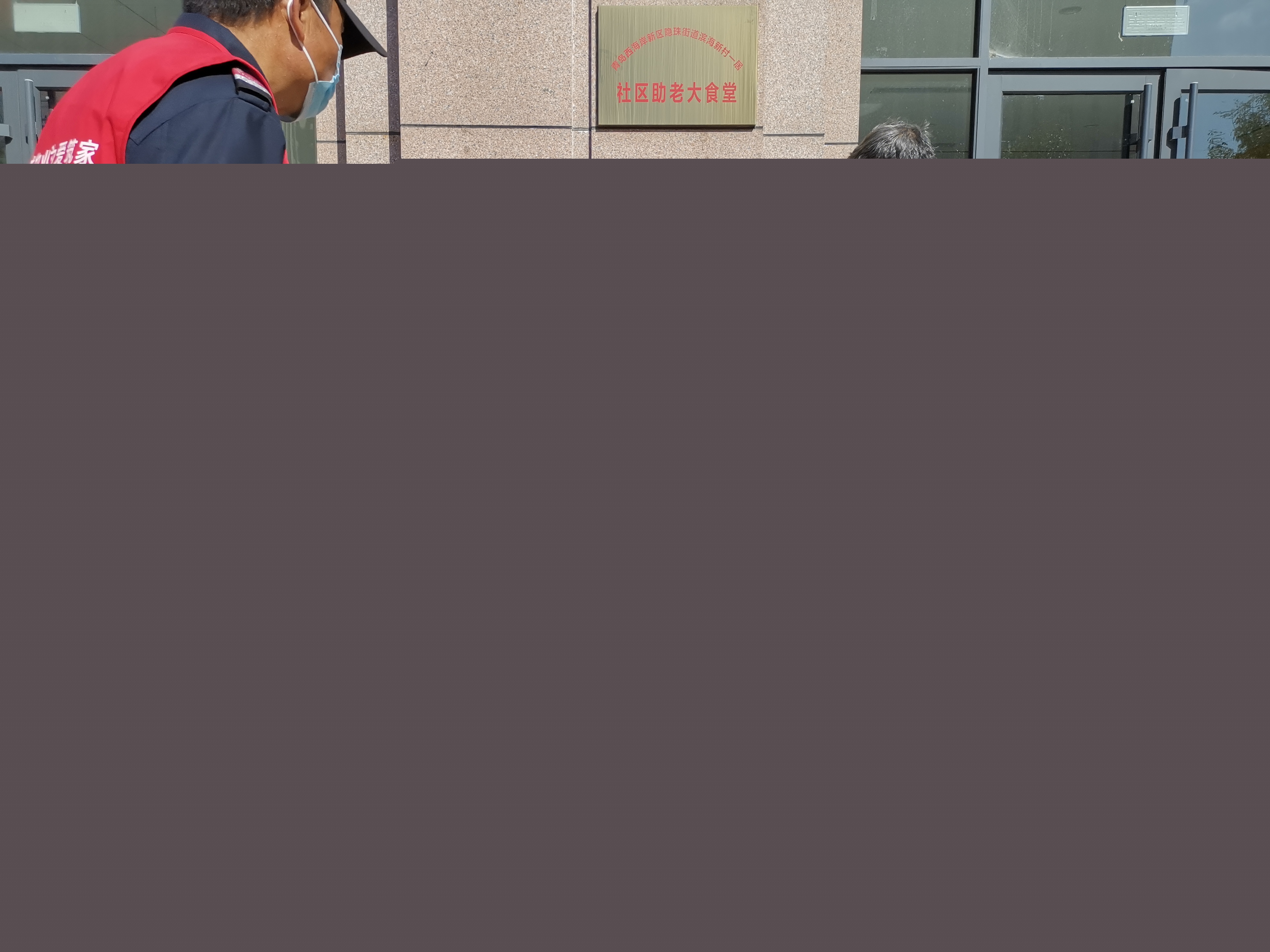 志愿者為濱海一居居民發放慰問物資
