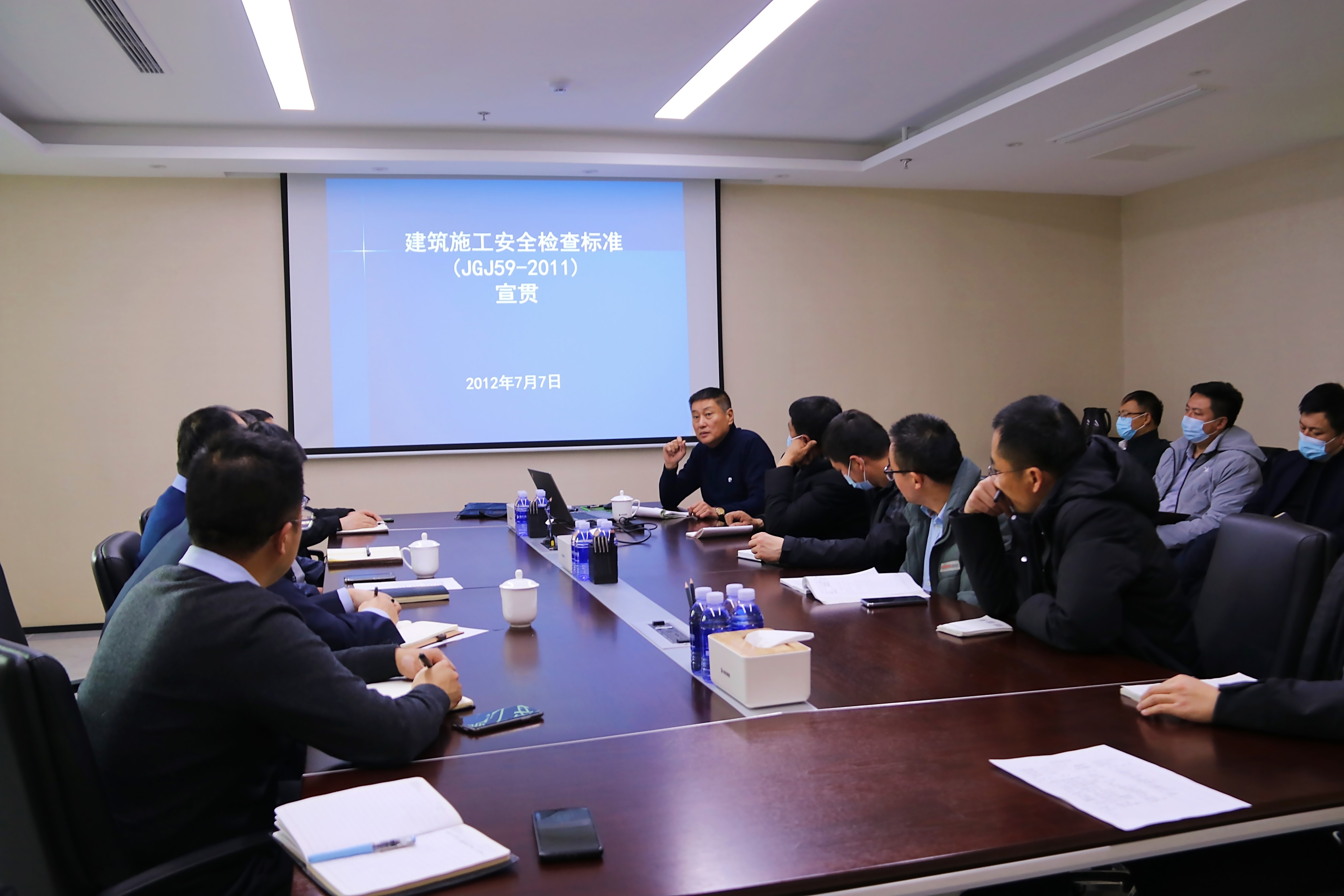 會上,倪建飛老師認真講解了《建筑施工安全檢查標準》。通過保證項目和一般項目兩方面入手,梳理了規范安全管理、文明施工、腳手架、高處作業、基坑工程、模板支架、施工用電等方面的具體做法,生動解釋了各項安全管理措施的必要性。進一步提升了參會人員的安全意識,提供了標準化安全管理思路,為春節后各項目開工打下良好基礎。