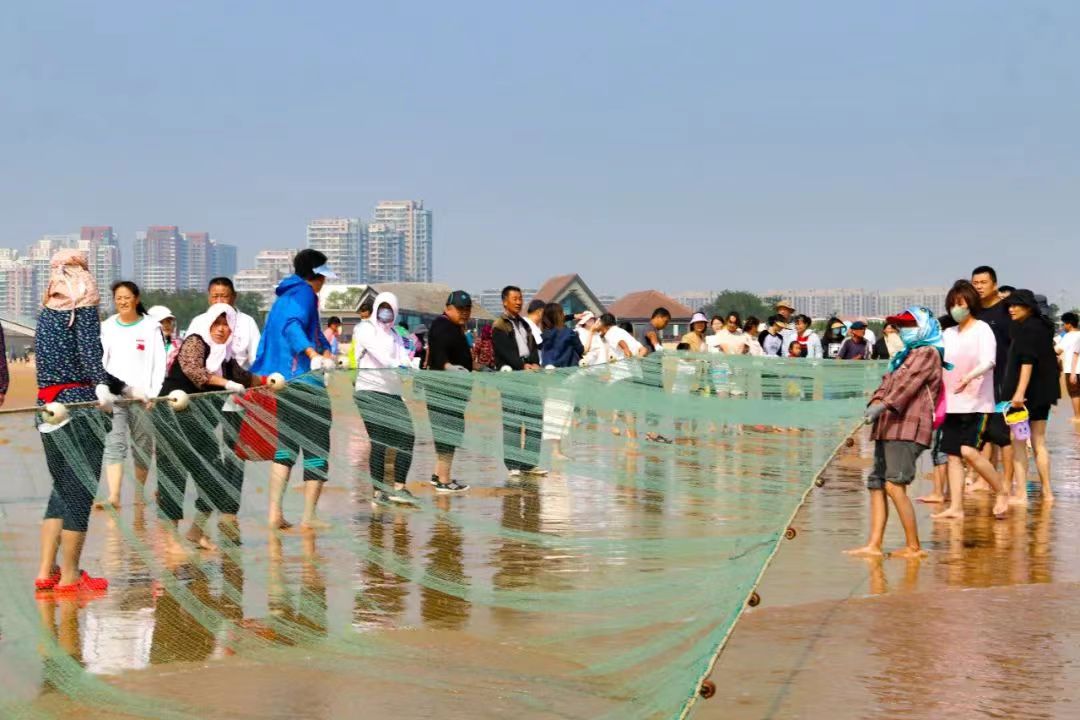 活動現場,碧海藍天如畫,漁家號子震天,百人同拉一張大網,同收一網魚獲,一起接受大海的饋贈。撒網、起錨、拉網、分魚,諸多游客和市民在漁把頭的帶領下沉浸式體驗拉網活動,感受原滋原味的膠東漁家文化。當天第一網拉上魚蝦蟹等豐富海鮮,漁把頭按照延續千年的傳統分配方式與大家分享拉網漁獲。“太有意思了,還想再拉一網!”來自河北的李女士一家拎著分到的一網兜魚,喜笑顏開。“沒想到時隔十年,還能有機會拉網捕魚!”來自一對生活在青島本地的老夫妻感慨道。